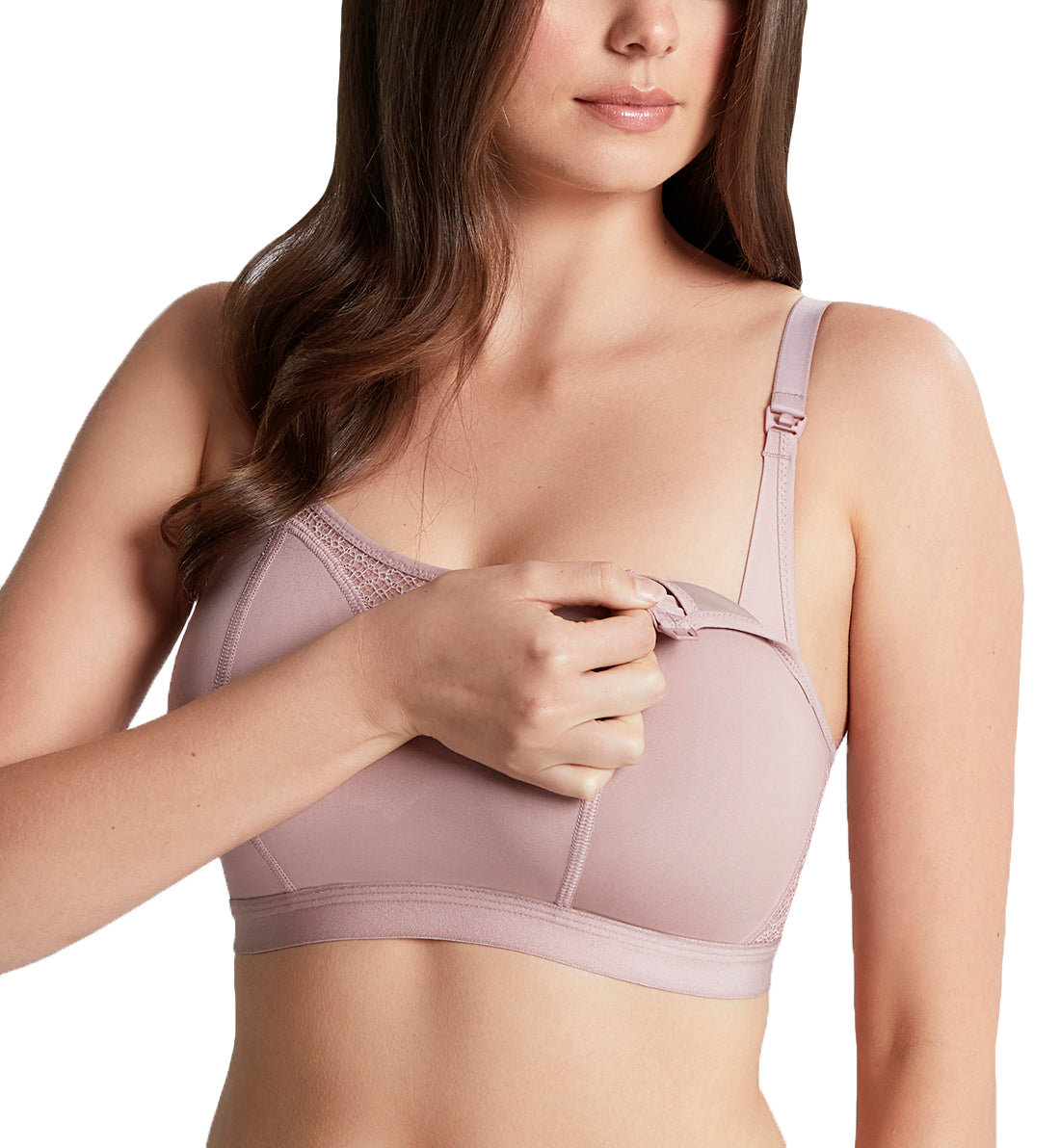 The Panache Katherine Non-Wire Molded Crop Nursing Bra (10391) is a wireless nursing bra with plenty of comfort and support, thanks to soft seamless inner cups. Features adjustable shoulder straps, a hook-and-eye closure at back, drop-down cups for easy nursing access, and a sporty crop-top look that makes it just as comfortable to wear out as it is around the house.