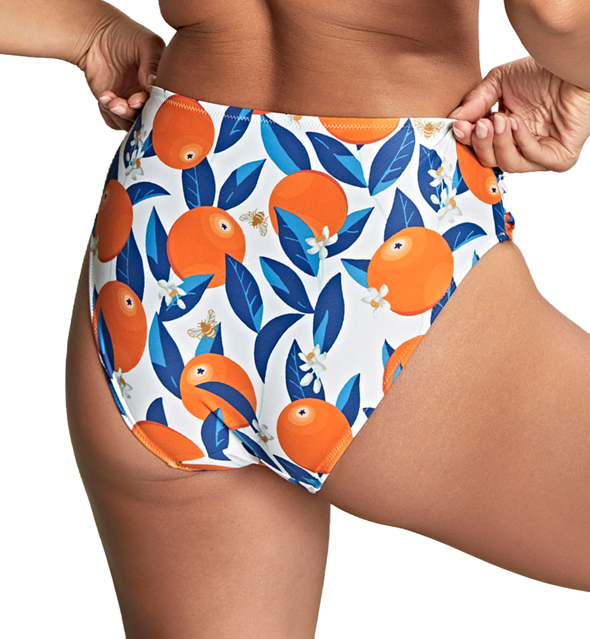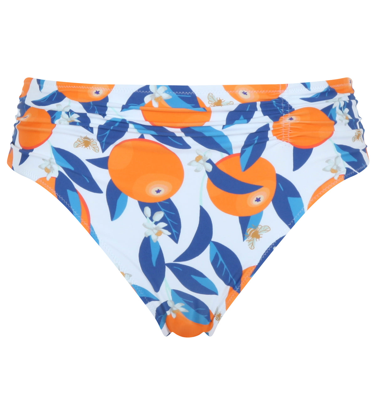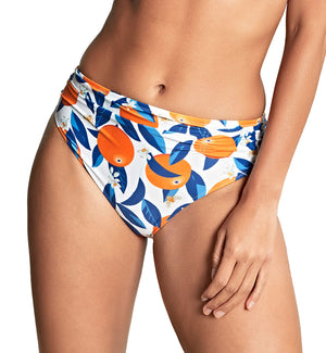 Panache Capri Midi Gathered Swim Pant (SW1729) is a high-rise bikini bottom in a stunning print inspired by the orange groves of Sicily. This flattering swim bottom offers moderate waist coverage and full rear coverage, with high leg openings that give the illusion of legs for days. Pair with Panache Bette Balcony Underwire Bikini Top (SW1842), sold separately, for a luxe bikini set that feels at great as it looks. Soft touch fabric feels incredible AND has high chlorine resistance, so you can swim with no stress on that perfect summer vacation. Check out the coordinating swim top for a matching set, sold separately.