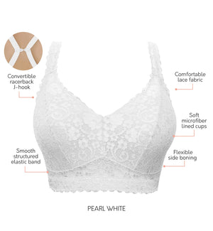 The Parfait Adriana Banded Stretch Lace Wireless Bralette 5482P is a new, updated take on a supportive bralette style. This gorgeously crafted lace bralette offers comfortable support with a structured band and adjustable shoulder straps and features a J-hook for racerback conversion.