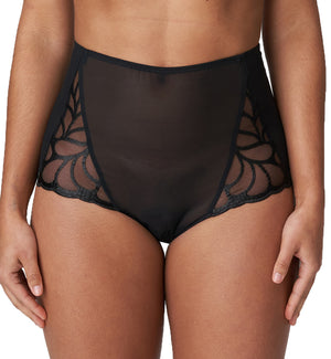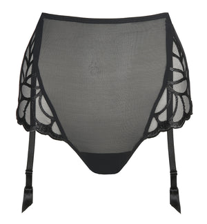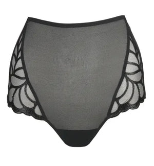 The Prima Donna Twist Aprodisia Matching Full Brief (0542161) features laser-cut, faux leather look embroidered hip panels on a structured tulle base. This semi-sheer, high-rise brief has low cut leg openings with scalloped edge styling. The sheer, full rear coverage has a keyhole detail making this panty a sexy and sophisticated addition to your lingerie wardrobe. Stetch satin garters are adjustable and removable. Pair with the matching bras Prima Donna Twist Aprodisia Full Cup Underwire Bra (0142160), Prima Donna Twist Aprodisia Deep Plunge Underwire Bra (0142166) or Prima Donna Twist Aprodisia Balcony Padded Underwire Bra (0242162) for a beautiful lingerie set, sold separately.