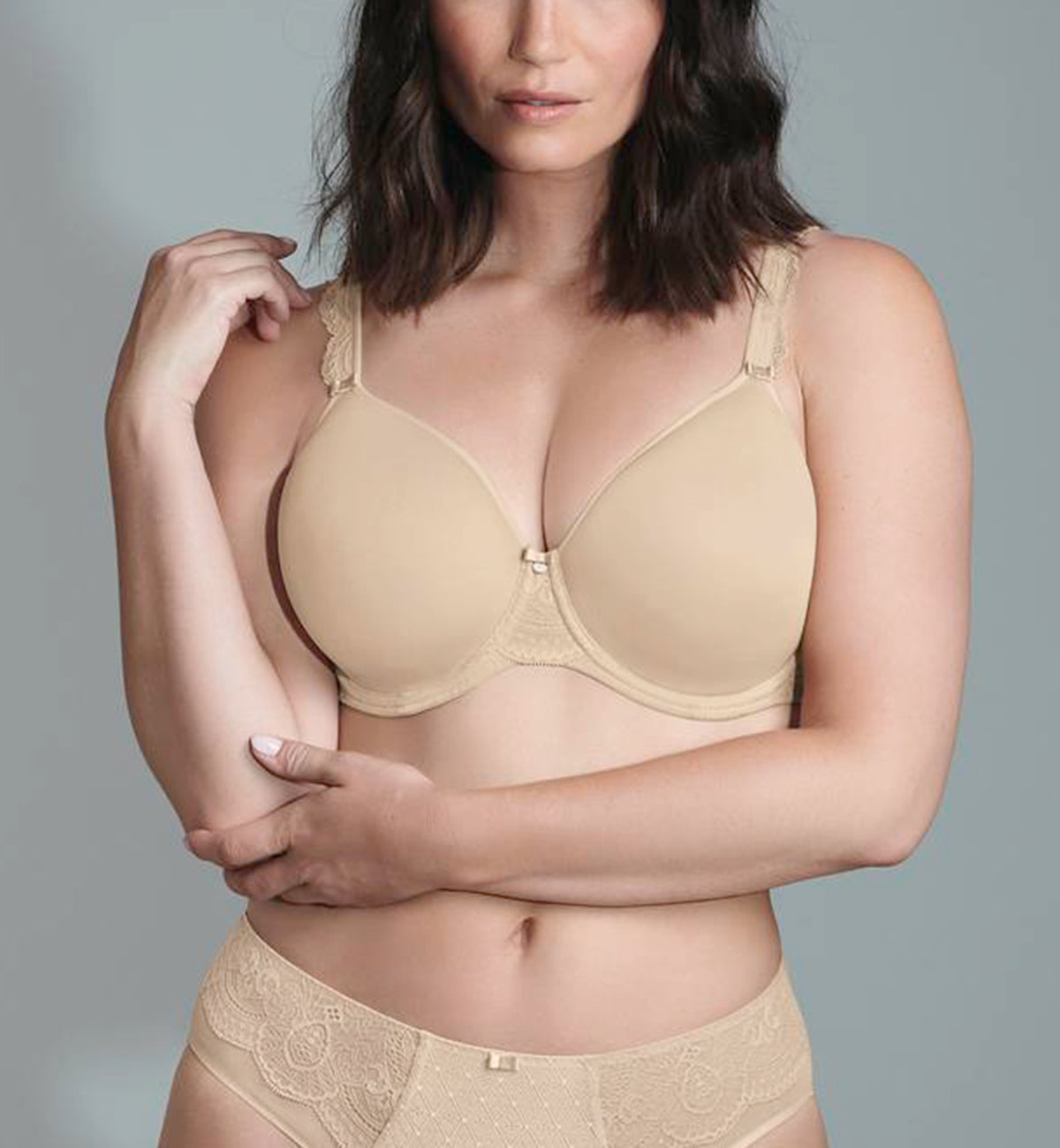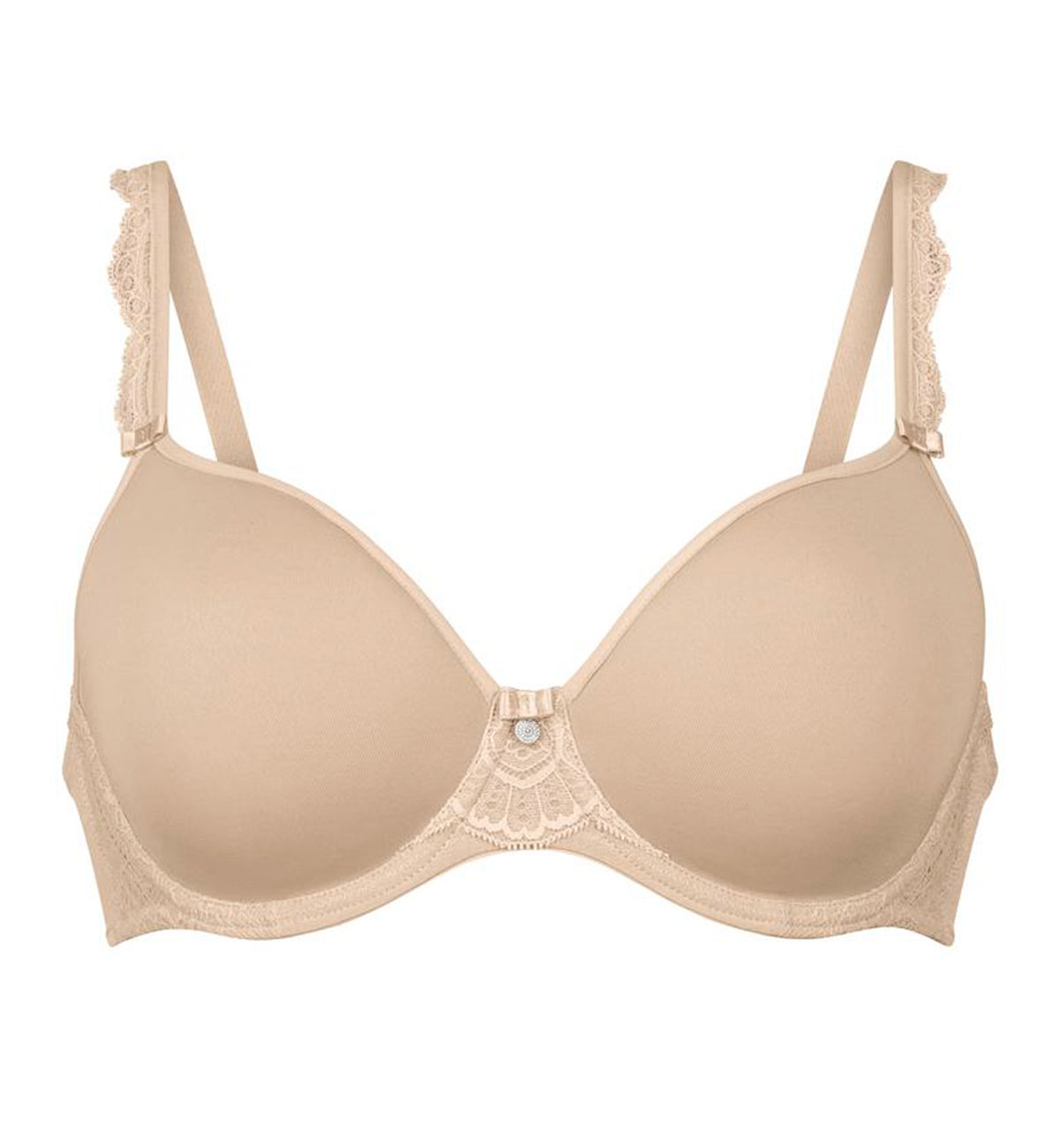 Rosa Faia by Anita Selma Seamless Spacer Underwire Bra (5637) is an airy and lightweight seamless molded bra with delicate lace trim along the front straps. This t-shirt bra features flexible spacer fabric that flexes and contours to the breast for a smooth hug and modesty without the bulk of traditional mold fabric.