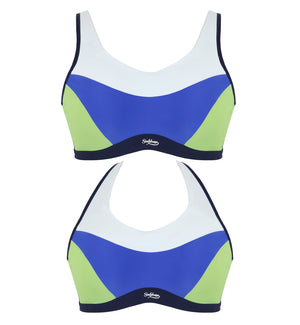 The Sculptresse Upbeat Non-padded Underwire Sports Bra (9442) provides a round shape and flexible fit that moves with your body during activity but keeps your bust secure and bounce-free. This non-padded sports bra is lightweight and breathable to keep you dry during your workouts. Designed to withstand high impact activities while remaining comfortable enough for everyday wear. Broader, adjustable straps with a J-hook option allows you to adjust this bra to your needs and remains in place. The flat seams create a smooth appearance bringing an updated look with the same expert fit and support.